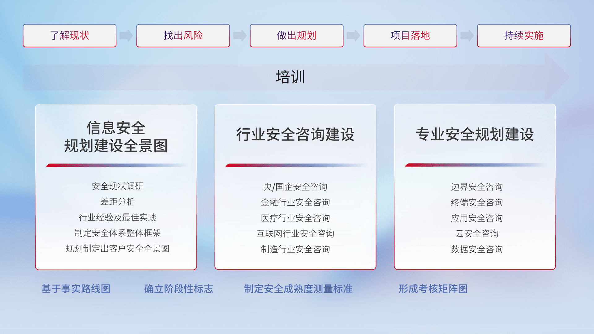 梳理客户信息安全现状调研、、、差距分析结果,,结合行业先进经验及最佳实践,,,,制订客户的信息安全管控体系总结架构,,,,最终形成一个完整的客户信息安全规划与建设的全景图。。。。