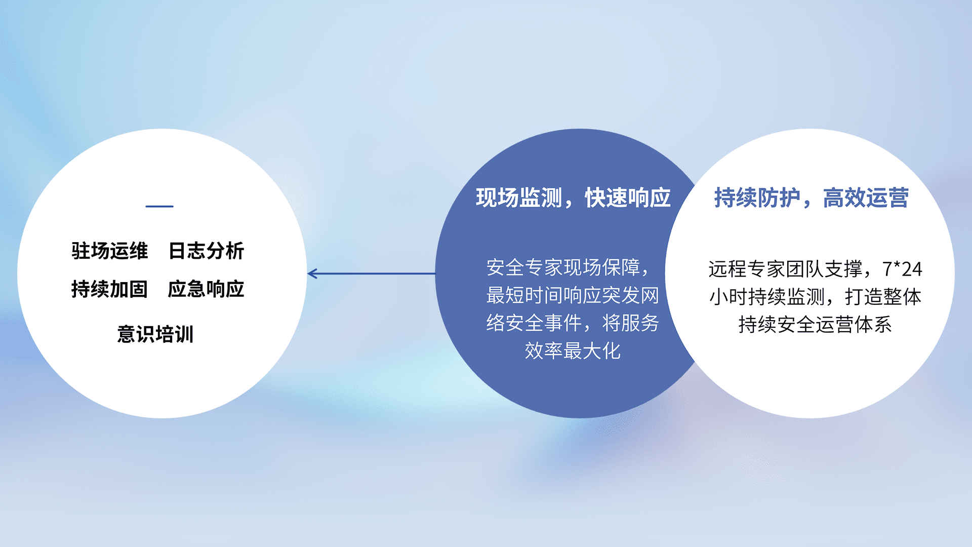 针对客户行业特性,,,,提供专属的一站式安全管理服务,,帮助客户全面感知网络空间威胁,,通过安全专家的线上、、、、线下防护支持,,,,实现风险闭环,,,,将安全保障常态化,,为客户打造常态化安全运维运营服务。。